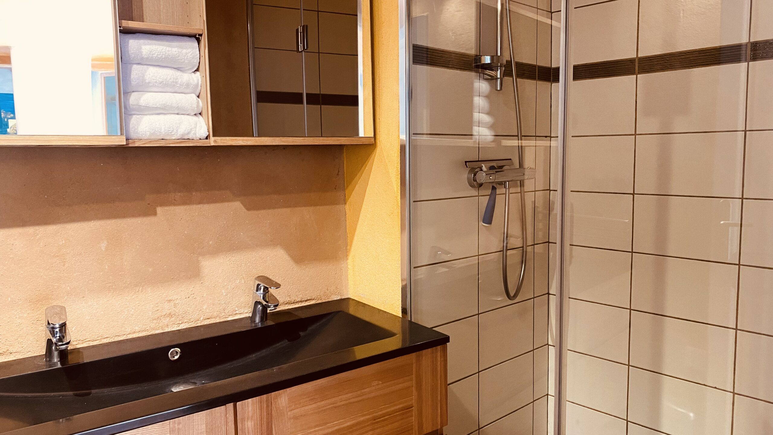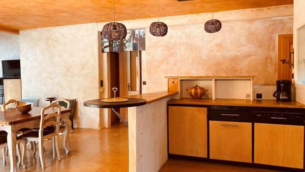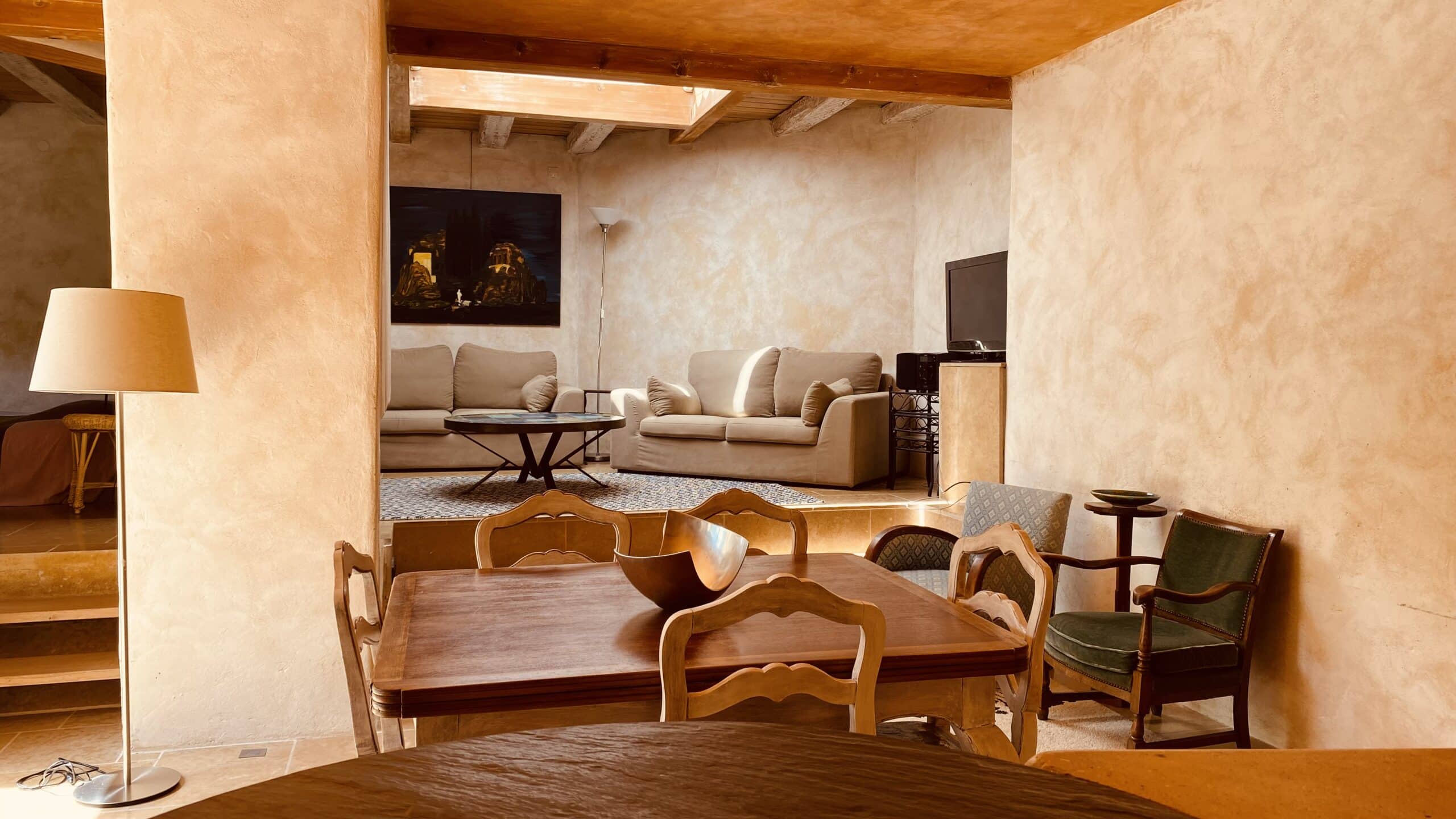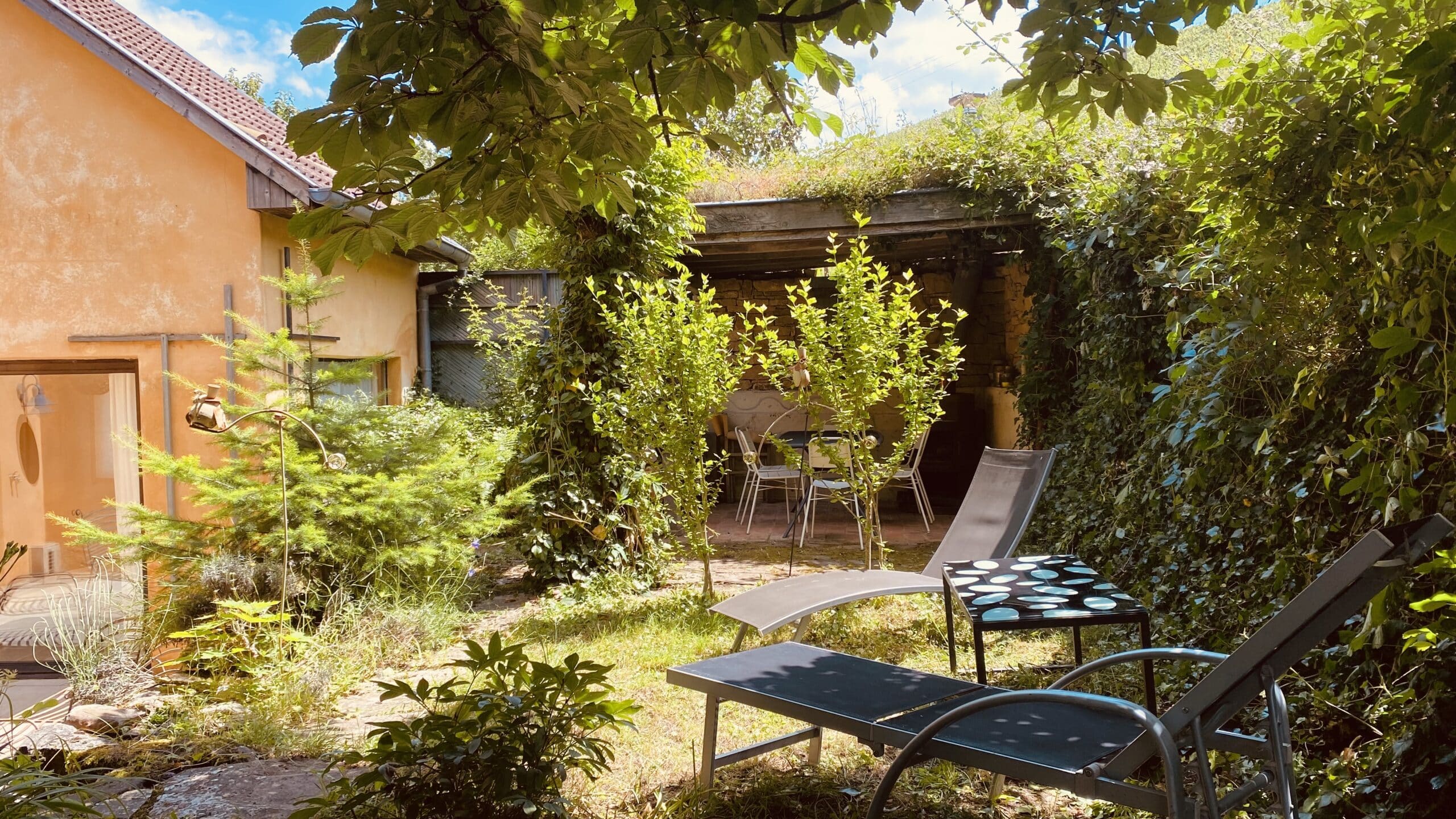 The U-shaped apartment opens onto the south-facing chestnut-tree garden, which stays very cool in summer. Both inside and out, a few levels need to be taken into account for certain people and for young children.